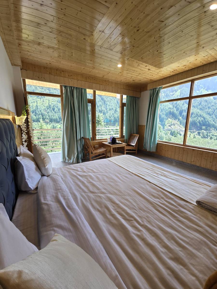 The Luxury Room at MB Igloo Resort redefines opulence in the heart of Manali's pristine landscape. Spacious and exquisitely designed, this room features top-notch amenities, including a king-size bed, a private balcony with awe-inspiring mountain views, and refined interiors that exude sophistication. Guests can indulge in the comfort of premium furnishings, a lavish en-suite bathroom, and advanced climate control for a cozy stay in any season. Perfect for those seeking the pinnacle of relaxation and elegance, the Luxury Room offers an unmatched experience, making it the ideal choice for a memorable retreat.