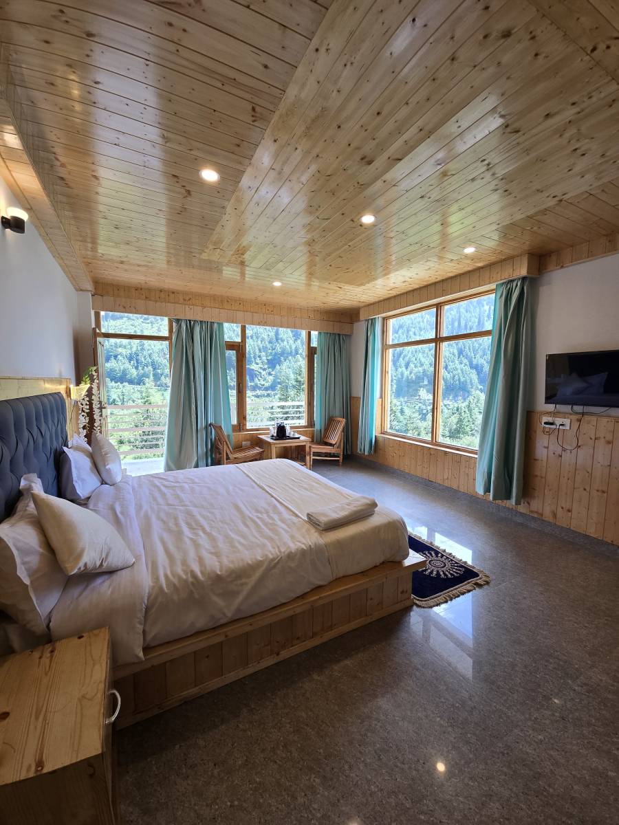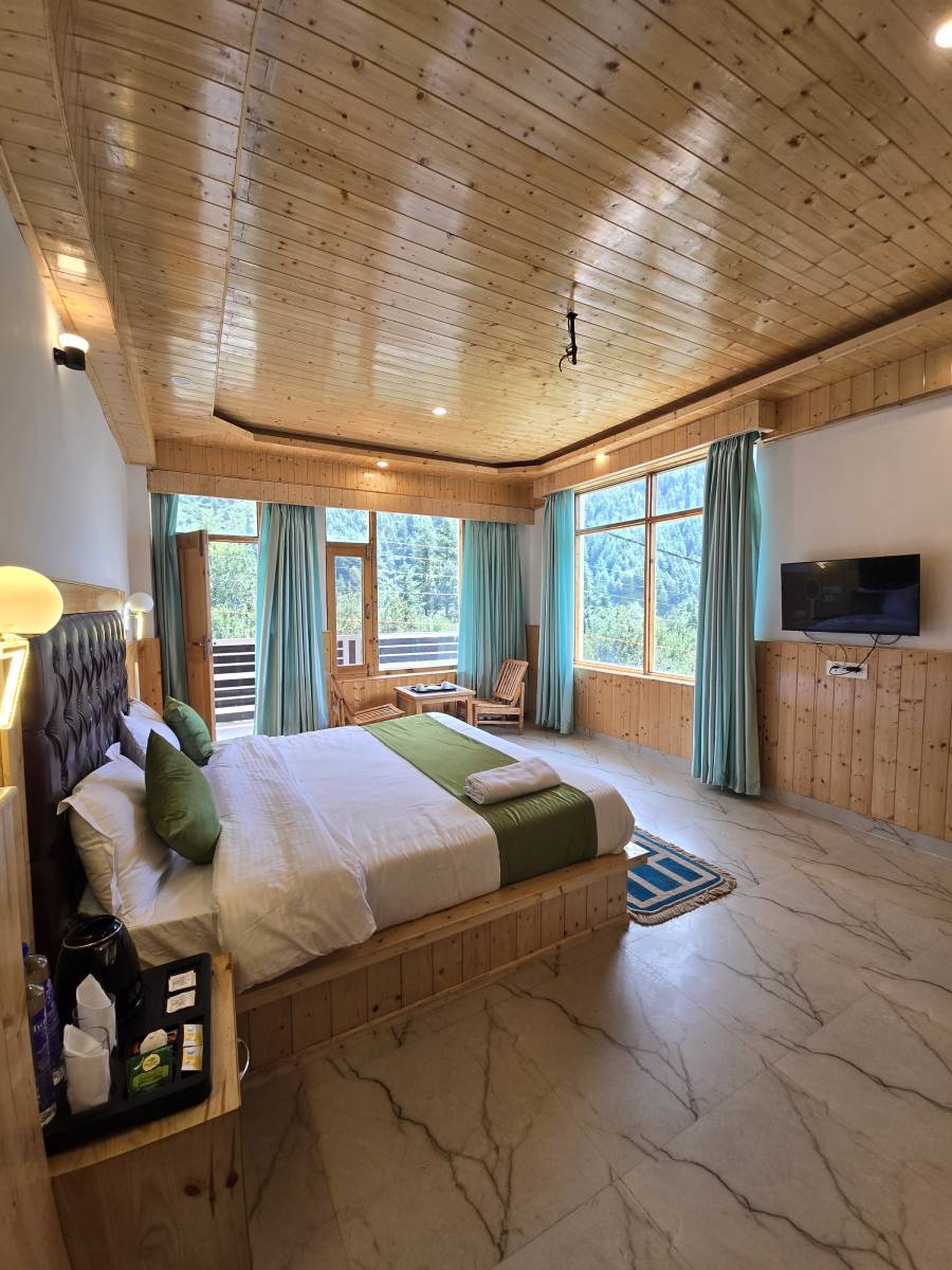 The Luxury Room at MB Igloo Resort redefines opulence in the heart of Manali's pristine landscape. Spacious and exquisitely designed, this room features top-notch amenities, including a king-size bed, a private balcony with awe-inspiring mountain views, and refined interiors that exude sophistication. Guests can indulge in the comfort of premium furnishings, a lavish en-suite bathroom, and advanced climate control for a cozy stay in any season. Perfect for those seeking the pinnacle of relaxation and elegance, the Luxury Room offers an unmatched experience, making it the ideal choice for a memorable retreat.