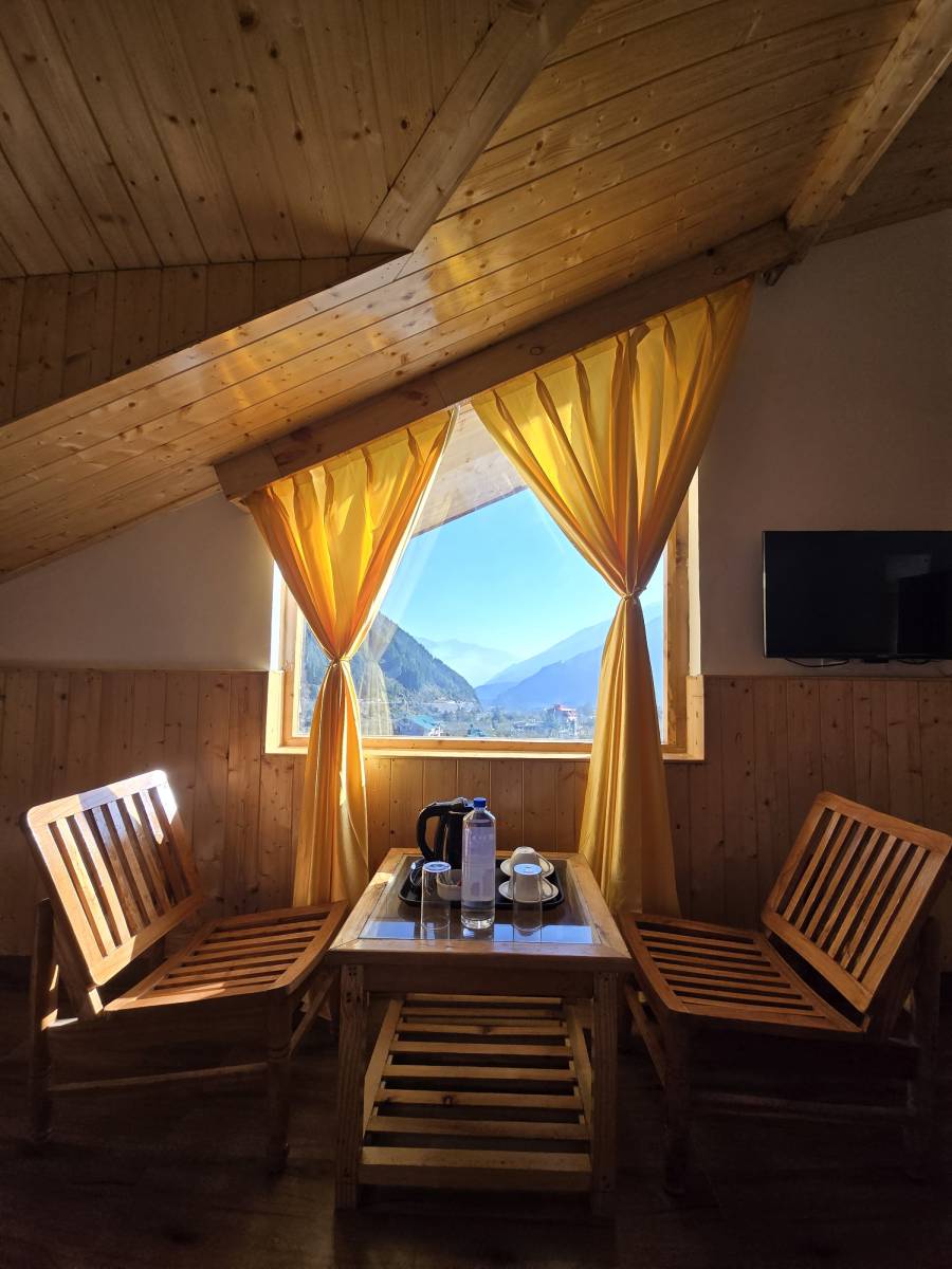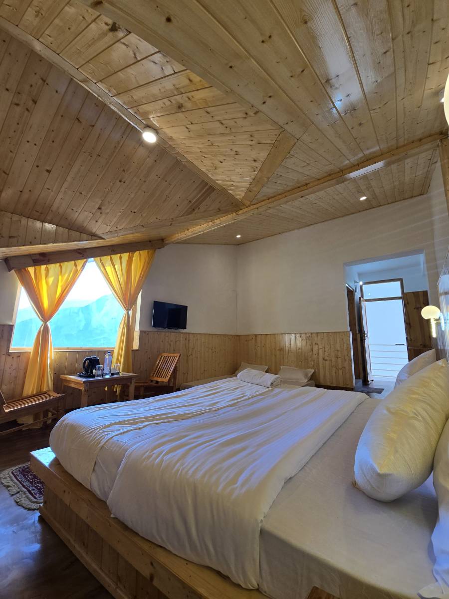The Wooden Attic Room at MG Igloo Resort is a charming retreat that combines rustic elegance with cozy comfort. Designed with sloping wooden ceilings and warm interiors, this room exudes a serene mountain cabin vibe. It features a comfortable bed, modern amenities, and large windows that fill the space with natural light while offering captivating views of the surrounding landscapes. Perfect for couples or solo travelers seeking a unique and intimate stay, the Wooden Attic Room provides a tranquil haven to unwind amidst the enchanting beauty of Manali.